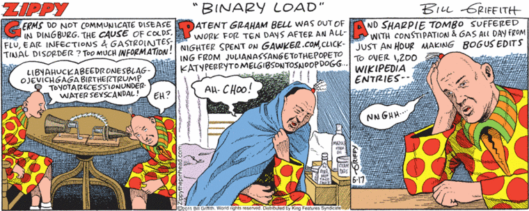 Yesterday’s Zippy has the Dingburgers suffering from infections and other disorders caused by Too Much Information: