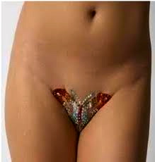 Some vajazzlings are as far north as the navel. But some go all the way south, as in this butterfly vajazzling: