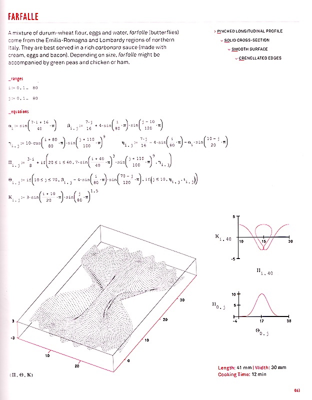 “Quirky but serious” is how the architect George L. Legendre describes “Pasta by Design” …, his taxonomy of 92 noodles, from the itty-bitty acini de pepe to ziti. Legendre shares his South London office with a fellow architect and inveterate pasta preparer, Marco Guarnieri, who gave him the idea to catalog with mathematical exactitude the difference between, say, fusilli and fusilli Capri. (The latter is longer, but both go great with a ragù.) Home cooks might blanch at the CAD-style schematics and trigonometric equations, but they can nonetheless appreciate that each pasta profile comes with cooking times and serving suggestions.