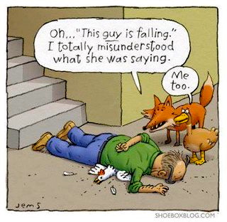 No sooner did I post on a word-division mishearing — black eye heard as black guy, here — than Jeff Runner posted on Facebook with a cartoon variant of a famous mishearing, from the site ShoeboxBlog.com: