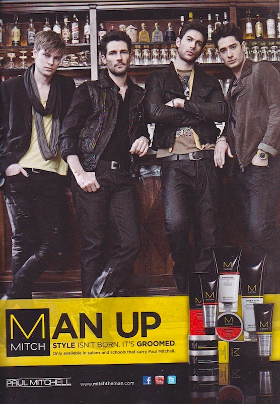 Second fact: The ad is for the MITCH line of products from Paul Mitchell — on Paul Mitchell the hairdresser, see here; on John Paul Mitchell Systems (hair care products and styling tools), see here; and the company’s website is here — which offers Double Hitter (“sulfate-free shampoo & conditioner”) and six kinds of hair-styling product: