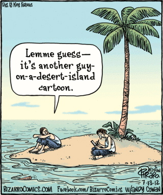 Then a meta gag cartoon — today’s Bizarro — playing on the themes of the genre: