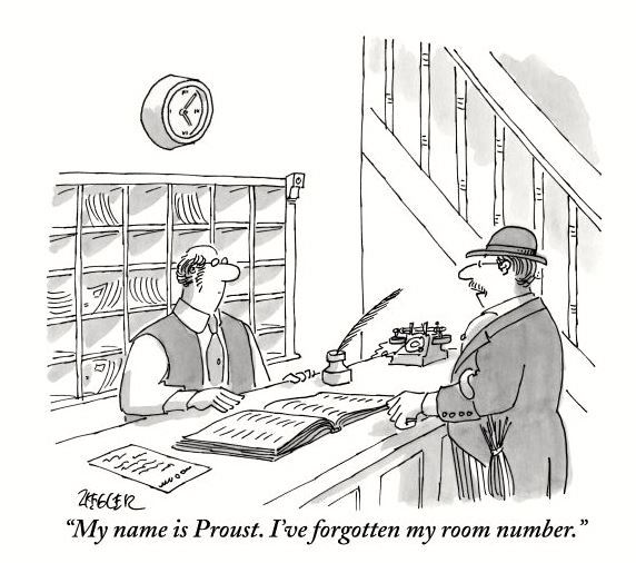 Here are three gag cartoons from my recent gleanings. First, a New Yorker cartoon by Jack Ziegler (one of many cartoons on the Proust theme):