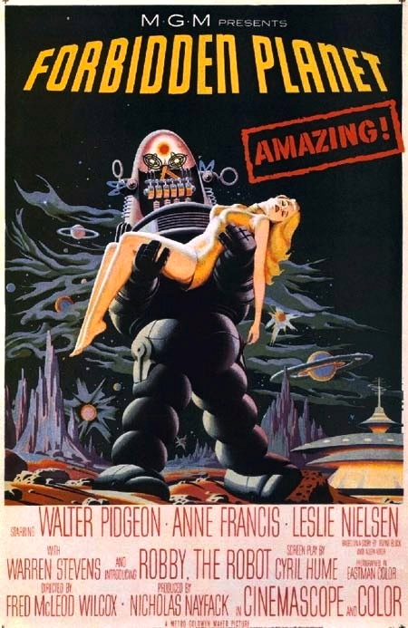 Forbidden Planet is a 1956 science fiction film directed by Fred M. Wilcox, with a screenplay by Cyril Hume. It stars Leslie Nielsen, Walter Pidgeon, and Anne Francis. The characters and its setting have been compared to those in William Shakespeare’s The Tempest, and its plot contains certain story analogs. Forbidden Planet was the first science fiction film that was set entirely on another planet in deep space, away from the planet Earth. It is considered one of the great science fiction films of the 1950s, a precursor of what was to come for the science fiction film genre in the decades that followed [in particular, Star Trek].