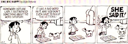 […] recent mess-ups in my postings: my original comments on the latest One Big Happy (here), which crashingly missed the point of the strip, although that wasn’t subtle; and, going […]
