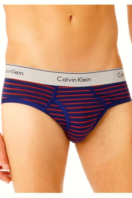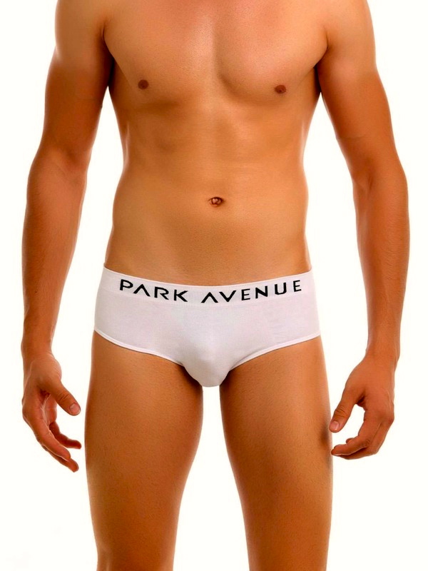 Now we come to the solution to a practical problem for men in briefs: how to pee standing up. With a plain brief like the Park Avenue number above, a guy has to pull down the front of his briefs and pull his penis over the waistband. Ok, not so difficult to do — as a plain-briefs wearer, I do it all the time — but it’s possible to make the task easier by complicating the design of the briefs, specifically by introducing a fly, essentially a hole through which the penis can be pulled for urination. So we get fly briefs otherwise similar to the flyless ones above: