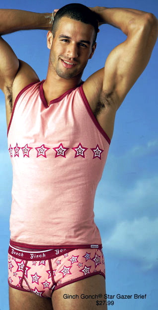 And the way is open for some people to see a sexual-advertisement function in garments like the contour brief above; the trade name contour brief is telling. (The briefs I wear are in fact contour briefs from Undergear, a somewhat different model from the one in this photo (low-rise, cotton mesh, and colored) — though I don’t do much sexual advertisement in them.)