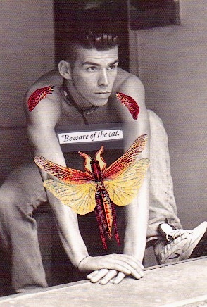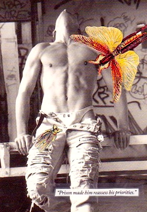 Holiday project: assembling a set of thematic collages based on images by the French male photographer Marc Bessange (see my posting here), with two added elements: a brief text from the New Yorker (all cartoon captions, except one quotation from Jim Carroll) and insect stickers. I like these highly constrained schemes for collages (though, god knows, I also do much more unconstrained stuff), as in my academic collages.