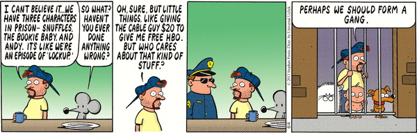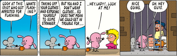 June 5, 2013Zippy the Pinhead has long played with metastrips, in which the cartoonist figures as a character or the characters talk about cartooning or both. Other strips sometimes indulge in this play: I posted about a recent Doonesbury in this vein, and Pearls Before Swine fairly often goes into this territory, with cartoonist Stefan Pastis appearing in the cartoon (as here). The current story line in Pearls goes deep into metacartooning. Yesterday’s strip: