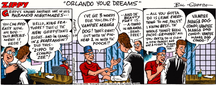 Not as complex as yesterday’s Mother Goose and Grimm, but trickier in some ways because you have to supply the words yourself.