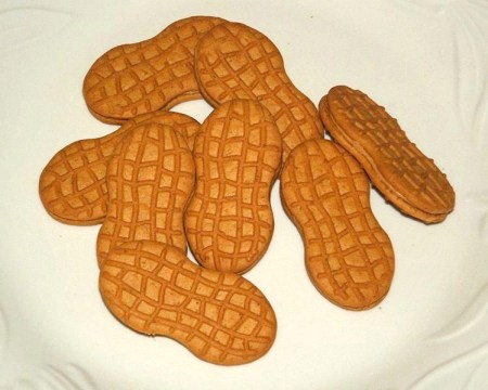 Nutter Butters originally had a two-ply bread peanut shape with a texture that resembled that of a peanut (resembling an hourglass). The individual cookies were about 3-4 inches in length and had a very recognizable and distinctive look.