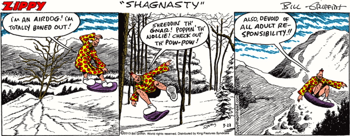 March 23, 2013In Today’s Zippy, our pinhead reverts to adolescence on a snowboard: