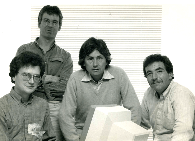 This shows Gazdar, Klein, Pullum, and Sag, in alphabetical order from left to right, in (I think) 1984, while they were finishing the manuscript of: