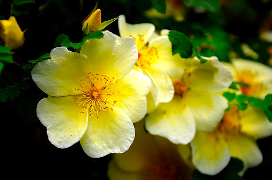 From this photo, you can see the resemblance to (single) wild roses, like this yellow variety (wild roses also come in white, pink, purple, and red):