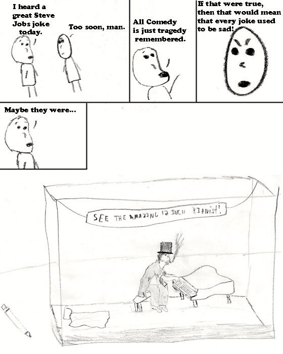 There is this guy who walks into a bar and notices a man 12 inches tall playing the piano. He asks what it is all about and the barman tells him he’ll tell him later.