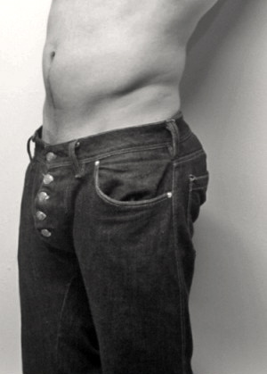 Now to step away from the X line and go back to enhanced packages, a topic I looked at back in 2011 with respect to a garment called JeanPants, essentially a codpiece worn as underwear. This turns out to be a crowded field. Here’s the beginning of a piece from the Fashionista site, “The (Painful) Backstory Behind New ‘Junk’ Jeans, Denim Specially Designed To Support a Man’s Package”, by Nora Crotty (8/13/12):