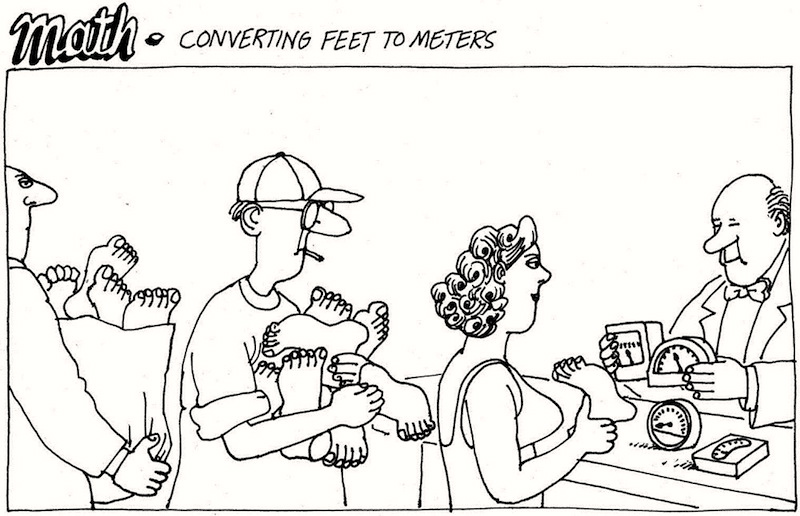 Outrageous puns on feet and meters.
