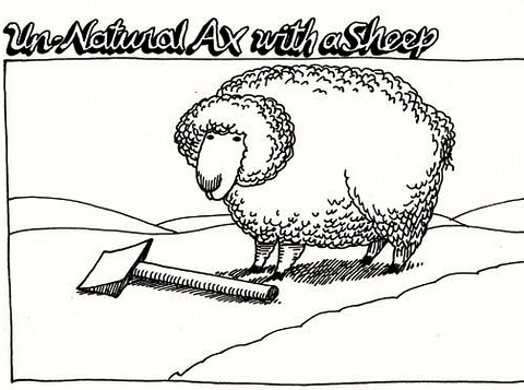 Pun on unnatural acts, with an unnatural ax in the drawing.
