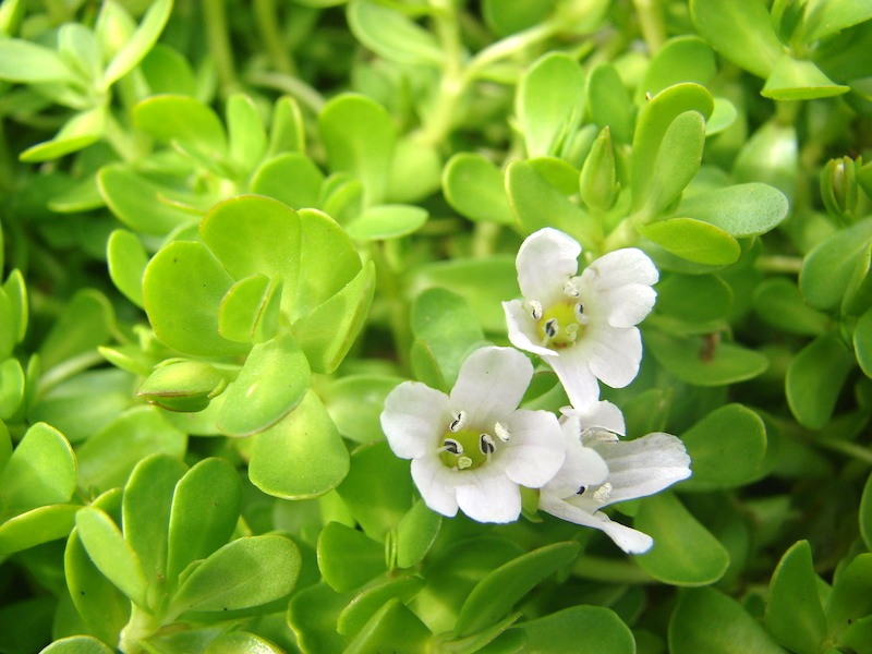Bacopa is a genus of 70 – 100 aquatic plants belonging to the family Plantaginaceae. It is commonly known as Waterhyssop (or Water Hyssop, though this is more misleading as Bacopa is not very closely related to hyssop but simply has a somewhat similar appearance).