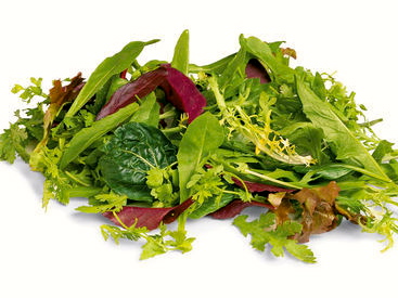 Mesclun … is a salad mix of assorted small, young salad leaves which originated in Provence, France. The traditional mix includes chervil, arugula, leafy lettuces and endive in equal proportions, but in modern iterations may include an undetermined mix of fresh and available lettuces, spinach, arugula (rocket, or roquette), Swiss chard (silver beet), mustard greens (Dijon’s Child), endive, dandelion, frisée, mizuna, mâche (lamb’s lettuce), radicchio, sorrel, and/or other leaf vegetables.
