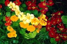 … Species in cultivation: The most common species in cultivation is a hybrid of T. majus, T. minus and T. peltophorum and is commonly just known as a nasturtium. It is mostly grown from seed as a half-hardy annual and both single and double varieties are available (doubles are mostly sterile and need to be propagated from cuttings). It comes in a range of habits and colours including cream, yellow, orange and red, either solid colour or striped and often with a dark blotch at the base of the petals. It is vigorous and easily grown and prefers a sunny spot. It thrives in poor soil and dry conditions whereas in rich soil it tends to produce much leafy growth and few flowers. Some varieties adopt a bush form while others scramble over and through other plants and are useful for planting in awkward spots or for covering fences and trellises.