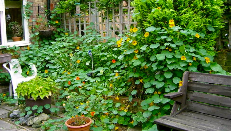 Nasturtiums/Tropaeolum. These wonderfully cheery flowers are incredibly easy to grow. In fact, they’re a great plant for kids to grow from seed: the seeds are big and easy to handle, and a kid can just push one into the ground with a thumb, and then water regularly. The plants shoot up quickly and grow fast.