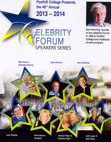 The line-up of speakers in the upcoming season of the Celebrity Forum at Foothill College (in Los Altos Hills CA):