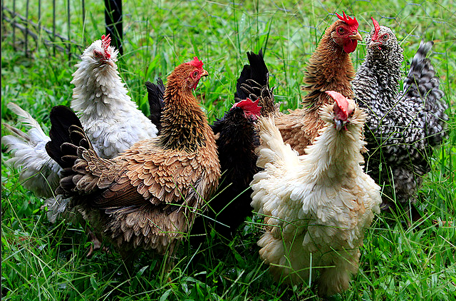 A Frizzle is a type of chicken with feathers that curl outwards, rather than lying flat as in most chickens. While many consider the Frizzle to be an entirely separate breed, it is not. Chickens from all breeds may have a frizzled appearance. It is a variety within breeds, some with clean legs and others with feathering on the legs. Genetically, the frizzled gene is a dominant trait. As a result of its unusual look, Frizzles are primarily exhibition birds