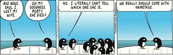 Today’s Pearls Before Swine, with the penguins coping with the transitive verb lose: