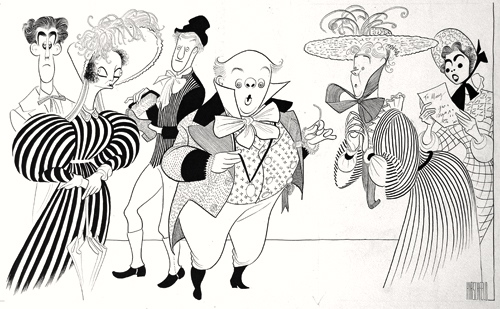 It’s almost impossible to pick a few Hirschfeld drawings from the extraordinary number available. Here are two group depictions, the first one (of the Algonquin Round Table) famous: