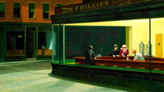 This is a parody of Edward Hopper’s famous Nighthawks. Other parodies viewable here.