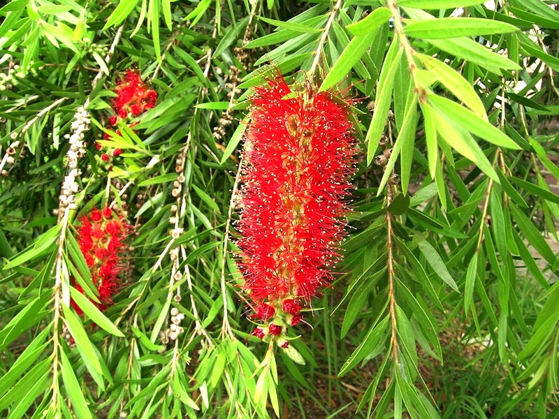 The Burlingham sisters (Ann, Kathryn, and Gillian) and their extended family (spouses, children, mother, and aunt) have been on tour on the other side of the world, sending back (wonderful) Facebook reports on their travels. Along the way, a note on Callistemon flowers.