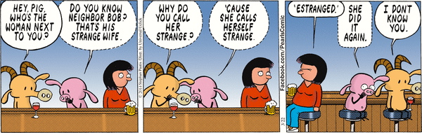 Three more cartoons, on varied topics: a Zippy, a Zits, and a Pearls Before Swine: