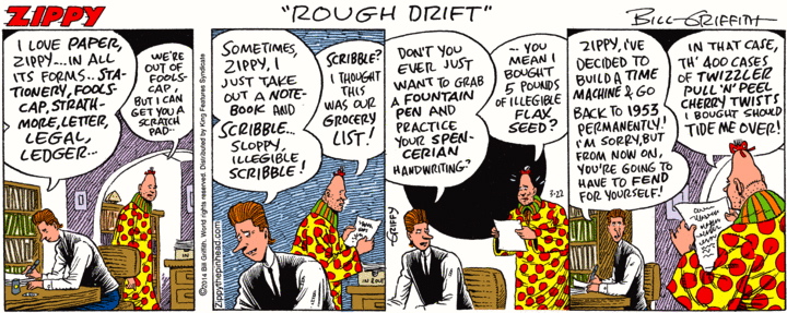 Zippy laments the passing of communication on paper, including even Spencerian script: