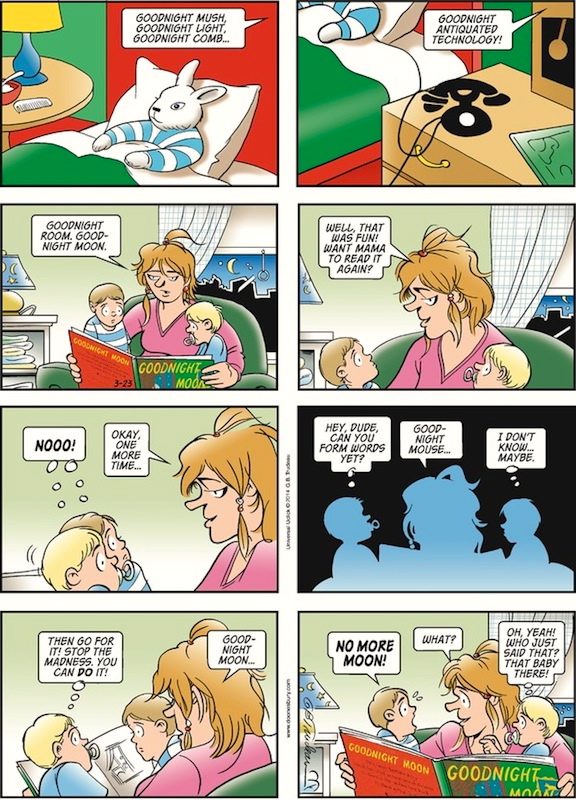 The 3/23 Doonesbury (hat tip from Karen Chung) with a novel view of prelinguistic kids: