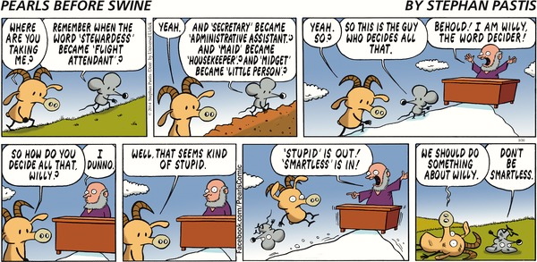 Pearls: the conceit is that there’s someone (Willy) who decides which words can be used.