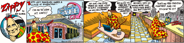 Then there’s the slang idiom on the lam and the diner in the strip.