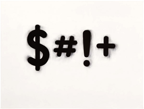 And some are right in your face, for example Dollar Hash Exclamation Plus (2011), with SHIT spelled out in obscenicons (an image that has appeared as an on-line joke on several occasions, though not so elegantly executed):