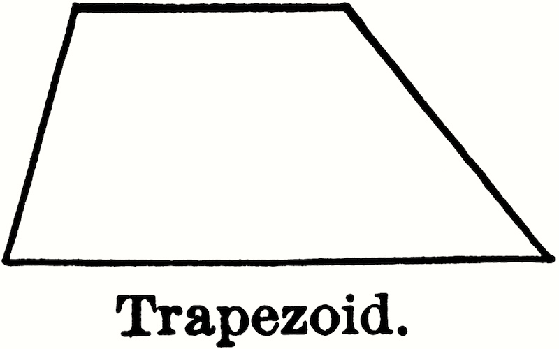Yes, the name of the geometric figure is the source of the word trapeze. The shape of a trapeze is that of an isosceles trapezoid, in which the legs (the non-parallel sides) are equal in length and the base angles are equal as well.