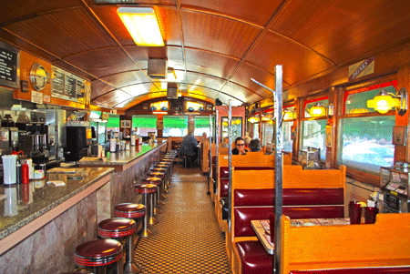 The diner is also notable for its attachment to the residence of the Alexanders (its owners), which was then converted into a restaurant, and for the distinctive chevron-shaped sign mounted on top of the diner that bears its name.
