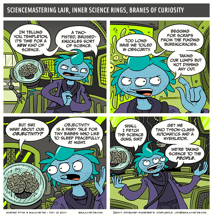 Yesterday’s Scenes From a Multiverse (“Going Rogue”, on-line here) gets scientifically aggressive: