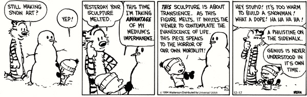 On the 16th, Calvin of Calvin and Hobbes drifted into art criticism, in snow: