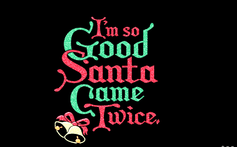 (From the T-Shirt Hell site, here.) The sexually modest reading: ‘I’m so good / nice (rather than naughty) that Santa came twice to our house (with presents)’, But then there’s a salacious sex-with-St.-Nick reading: ‘I’m so good (at sex) that Santa Claus ejaculated twice’.
