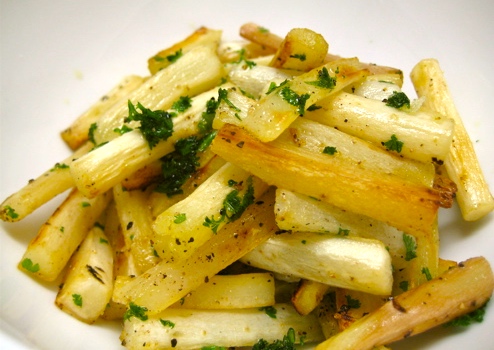 Salsify (home-grown) was a staple of my Swiss grandmother’s cooking. Prepared in various ways (recipes available on-line), for example pan-roasted: