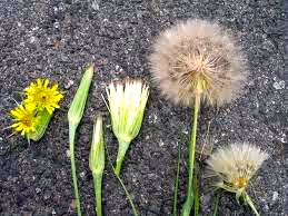 The wild relative. Culinary salsify is specially bred for its carrot-like taproots. But there’s also lots of wild goatsbeard around (just as there are also lots of wild carrots around: Queen Anne’s lace). Yellow-flowered goatsbeard grew all over the place in Ohio when I lived there; here’s the plant in various stages, including the dandelion-like seedhead: