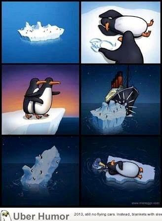 Ah, a mirror image version of a well-known 1997 movie, from the point of view of the iceberg denizens rather than those of the White Star liner. The mirroring extends also to the earth itself (reversing north-south rather than east-west), since penguins are not found in the north Atlantic.