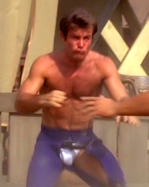 Two comments on my Doug McClure posting: from Chuk Craig (“I always liked his cousin Troy”) and Christopher Walker (on whipping scenes: #3 in my posting is a whipping scene from The King’s Pirate). So the whipping theme led of course to Robert Conrad in The Wild Wild West and his scenes of shirtless bondage.