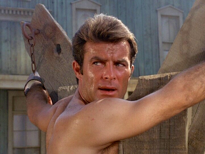 Robert Conrad. And, oh my, Conrad in The Wild Wild West on television, who was regularly subjected to shirtless bondage and, often, whipping.