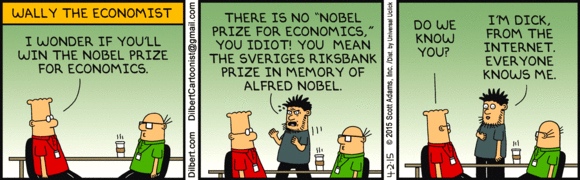 The raging pedant in the Dilbert is named Dick, thus smuggling into the strip the vulgar slang dick ‘stupid or annoying person (especially a man)’ (which NOAD2 takes to be a variant of dickhead in this sense). This is a mild enough slur that it’s used regularly on some television shows (for instance, Supernatural, where it seems to function as a milder version of asshole).