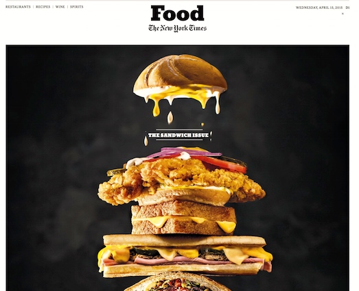 One summarizing story: “A Field Guide to the American Sandwich: A celebration of the sandwich, and an attempt to create a taxonomy for its many diverse forms” by Sam Sifton: